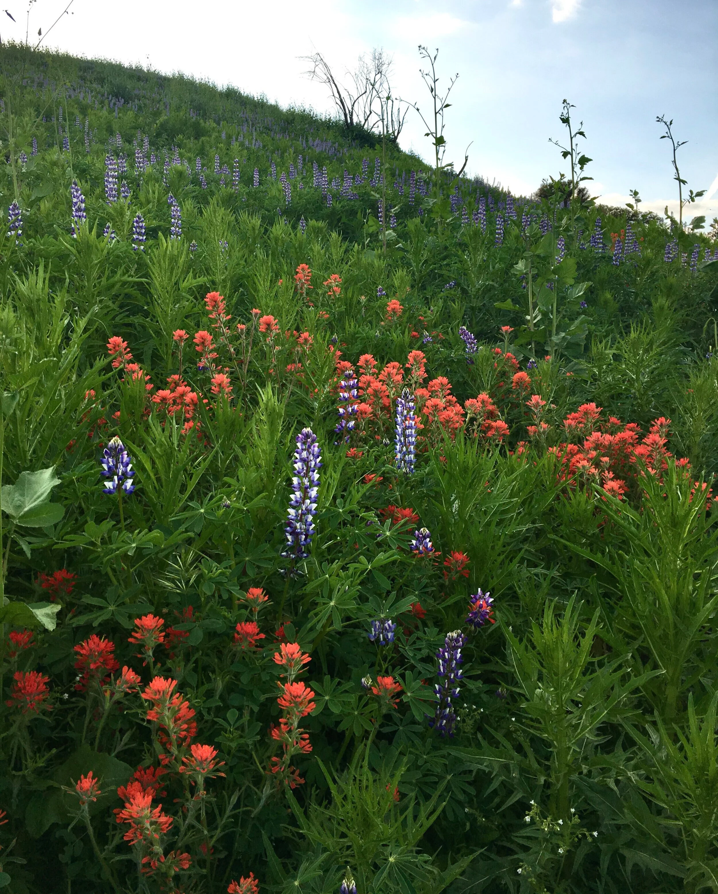Castilleja sp. and Lupinus sp. in Agoura Hills, CA, post-Woolsey Fire, April 2019 (author photograph)