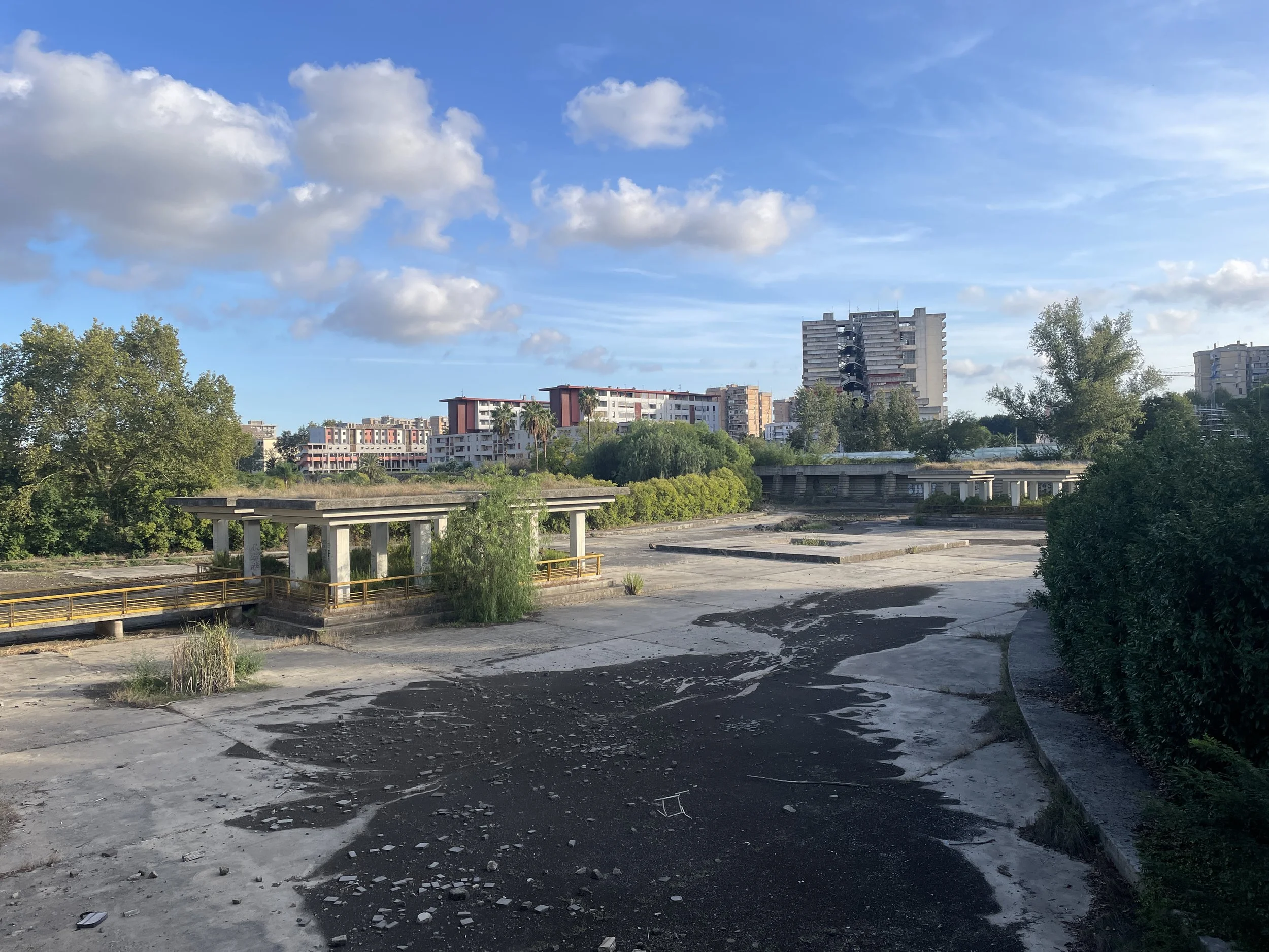 Parco Ciro Esposito has also had very strong public advocacy and initiative-creation to transform and make the park healthy and safe. But the struggle against abandonment and neglect continues. All three of these parks - Troisi, Fratelli de Filippo, and Ciro Esposito, have active government plans for renovation and restoration of the parks, yet this, sadly, often spells further abandonment. There is a well-defined pattern of abandonment via restoration, where a large, well-funded, renovation project is announced, and then the park is fenced off and sits for years while the planning process is underway, and the structures and plantings are left without even a modicum of maintenance, deteriorating to a worse state than before the restoration was announced. This effect is currently evident at Parco Ciro Esposito, closed to the public for 6 years from 2008-2015 and again now since 2022, with plans of restoration, but in the meantime left to decay and overgrow. In January 2025 it was announced that the expenditure for the park renovations would be dropped from €780,000 to €400,000. With the neglect and closure of the park since announcing this restoration, the park conditions have greatly deteriorated, and yet now the budget for renovation is almost halved. And it is a painful echo for this neighborhood, where budget cuts during construction of the Vele towers led to the cutting from the project of many facilities and services, and these cuts are seen as a major factor in the exacerbation of the degradation of the housing and neighborhood.