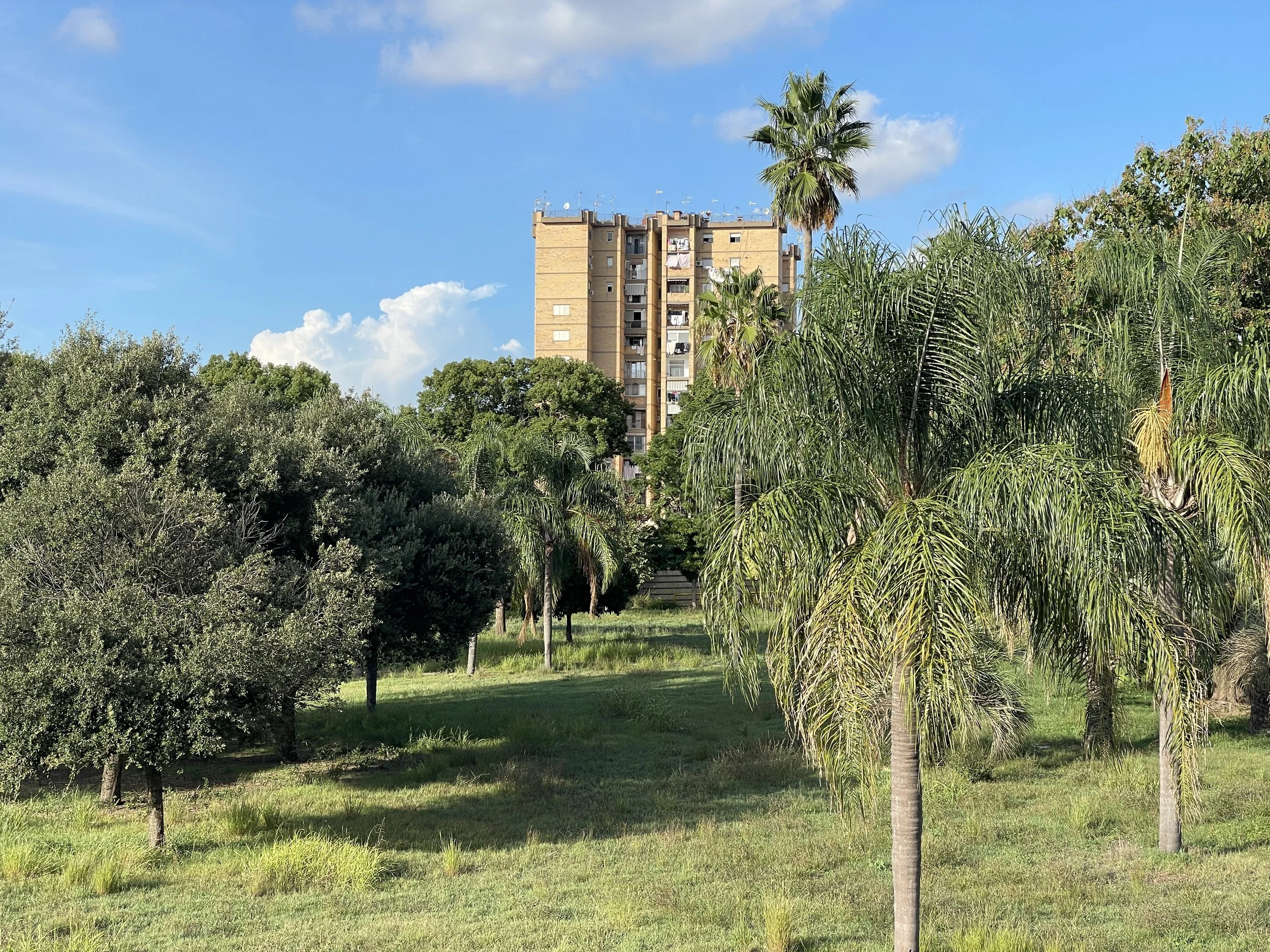 To enter this single entrance at Parco Fratelli de Filippo, one crosses a jogging path that encircles the 1.5 km of park perimeter, often bustling with runners and walkers, and then enters through a corner bar. This bar is called “C’est La Ville Cafè”, a play on words with Villa Comunale, the term for the main public park of a district. When I visited on a Sunday morning in September, the café was crowded with people having animated conversations over coffee.
